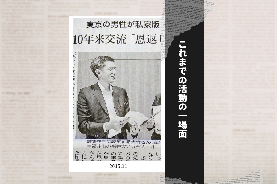 詩を書いて毎日を暮らしています。東京在住ですが、地縁をいただいている福井県での活動がメインです(福井県詩人懇話会に所属し、ほかに福井県内の同人誌グループ2つに所属しています)。こうした環境で約10年間、詩を継続して発表しています。